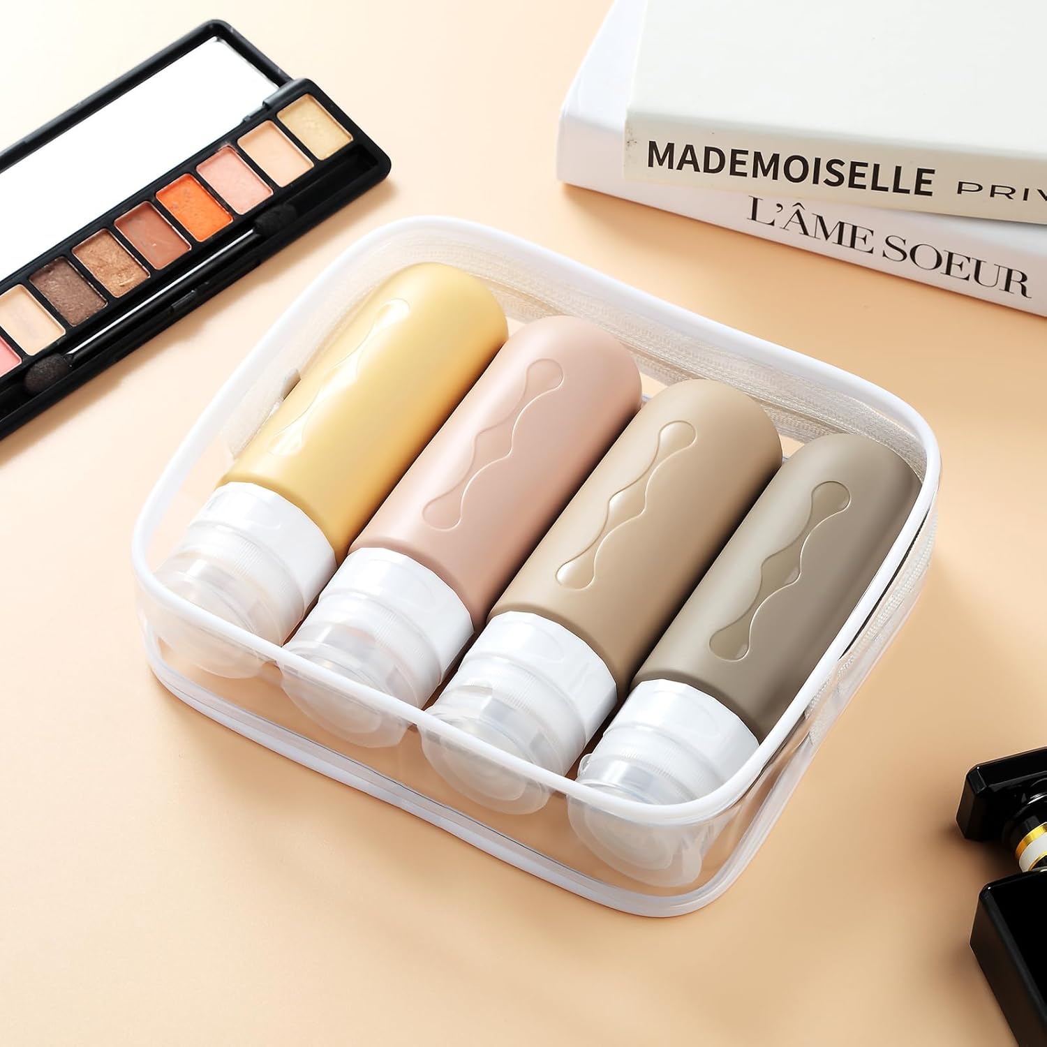 Travel smart with this essential 4-piece leakproof silicone bottle set. Each container seals securely to prevent spills and leaks, protecting your luggage from toiletries, oils, and liquids. Made from durable, flexible silicone that withstands travel wear and tear. TSA-approved for carry-on compliance. The included pouch keeps all bottles organized and accessible. Perfect for weekend getaways, business travel, or everyday use. Refillable design saves money and reduces plastic waste. Lightweight and compact—fits easily into any bag without taking up precious space.